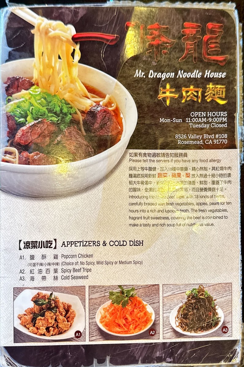 Welcome to MR DRAGON NOODLE HOUSE, a delightful Chinese noodle restaurant located at 8526 Valley Blvd #108, Rosemead, CA 91770. If you're craving a taste of authentic Chinese flavors, this is the spot you won’t want to miss! Known for its generous portions and vibrant atmosphere, Mr. Dragon Noodle House has quickly become a favorite among locals and visitors alike.